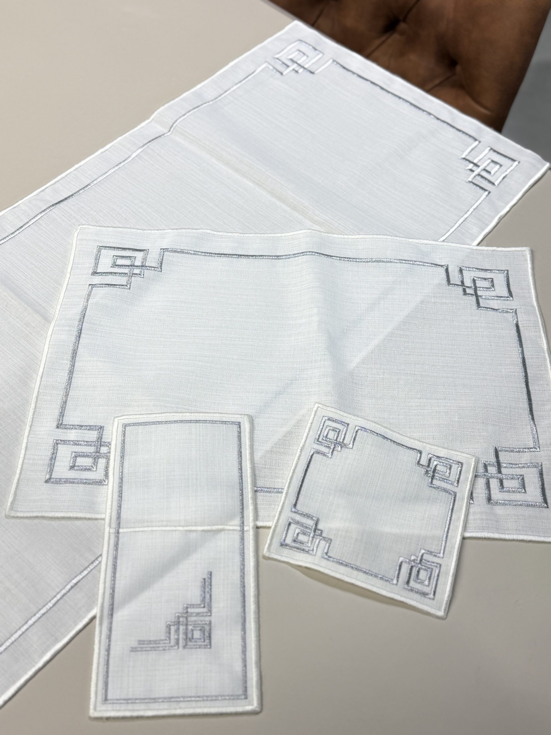 Ensemble de table en tissu brodé Iris , Silver 19 pièces
