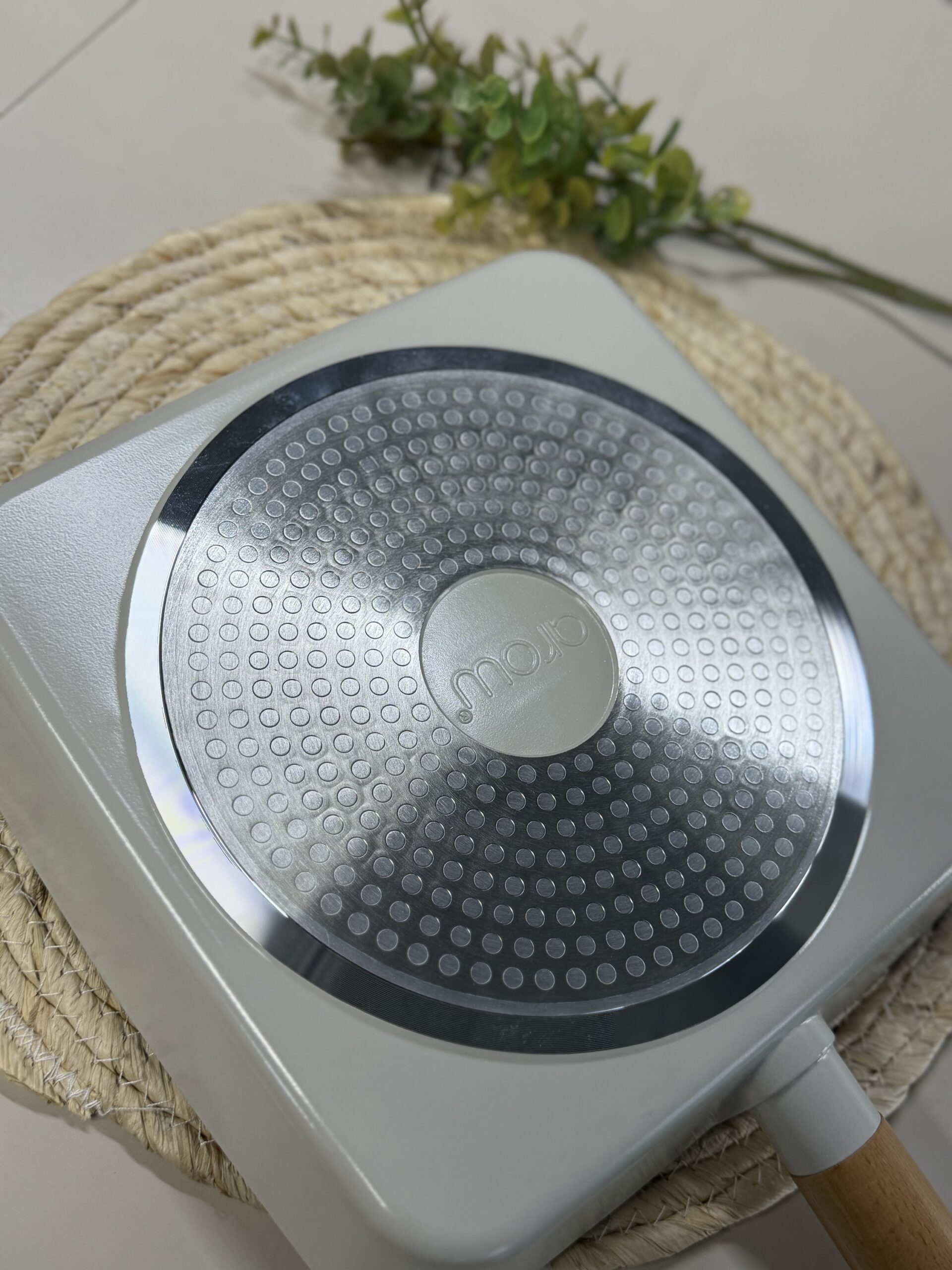 Poêle grill striée avec manche en bois